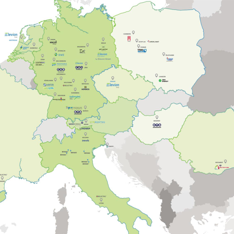 Elevion Group działa na ponad 13 rynkach europejskich (w tym w Holandii, Niemczech, Austrii, Włoszech, Polsce, Rumunii i na Węgrzech) poprzez sieć ponad 80 wysoko wyspecjalizowanych, niezależnych spółek, korzystając jednocześnie z siły finansowej międzynarodowej grupy.